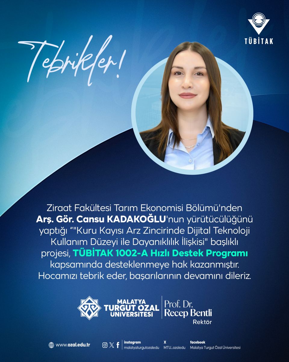 Ziraat Fakültesi Tarım Ekonomisi Bölümü'nden Arş. Gör. Cansu KADAKOĞLU'nun yürütücülüğünü ...