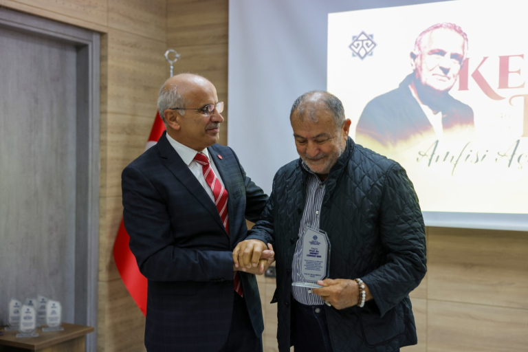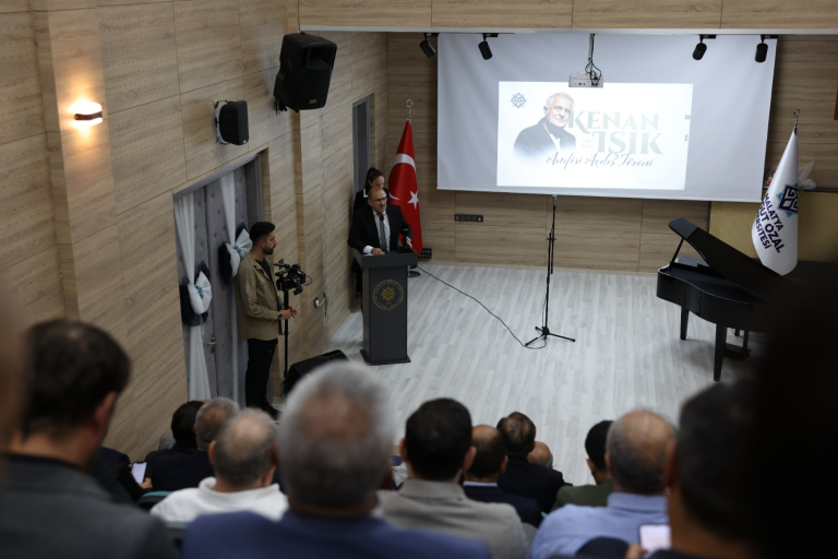 Kenan Işık’ın kardeşi Prof. Dr. Memet Cengiz Işık ise konuşmasında usta sanatçının hayatını ayrıntılı bir şekilde anlatarak; “Abim Yusuf Kenan Işık’ın hikâyesini kelimelere sığdırmak zor. Daha ilkokul çağında, Sıtmapınarı’ndaki evimizin bahçesinde kurduğumuz küçük kulübede sinema oynatmamızla başladı her şey. O, annemin ocak perdesine yansıyan film parçalarını seslendirirken aslında sanat yolculuğuna çıkıyordu. Ortaokul yıllarında Malatya Halkevi’nde başlayan tiyatro tutkusu, Ankara’da lise ve üniversite yıllarında devlet tiyatrolarına uzandı. Abim, sahneyi yalnızca bir sanat mekânı olarak değil; insanın kendini tanıdığı, topluma ayna tuttuğu bir alan olarak görüyordu.” ifadelerini kullandı. Memet Cengiz Işık, sanatçının çok yönlülüğüne vurgu yaparak; “TRT’deki belgesellerden İstanbul Şehir Tiyatroları Genel Sanat Yönetmenliğine, köşe yazarlığından televizyon sunuculuğuna kadar her alanda sanatın izini sürdü. Halk onu ‘Kim 500 Milyar İster’ programının sunucusu olarak tanıdı ama o her şeyden önce tiyatronun, edebiyatın ve sanatın insanlara dokunan gücünü temsil ediyordu. Bugün onun adının bu amfide yaşatılması, ailemiz için büyük bir gurur ve mutluluk kaynağıdır.” dedi.